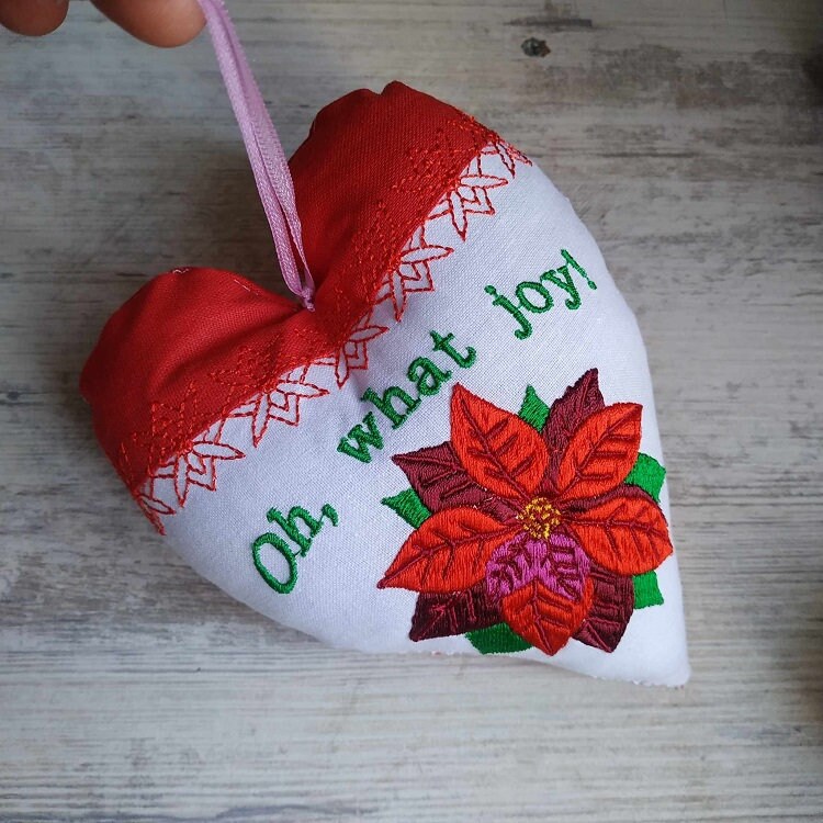 This is a set of one big Poinsettia heart, also blank heart and just poinsettia embroidery designs.