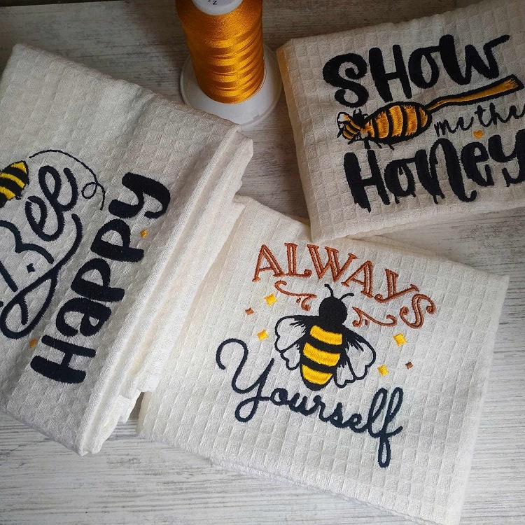 Sweet bees five designs to make your projects special and also good idea as the tea towels embroidery.