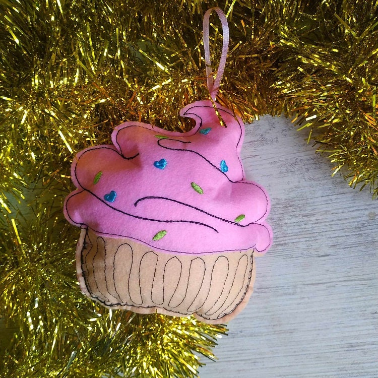 The cupcake felt ornament done completely in the hoop with a little handsewing inclusion.