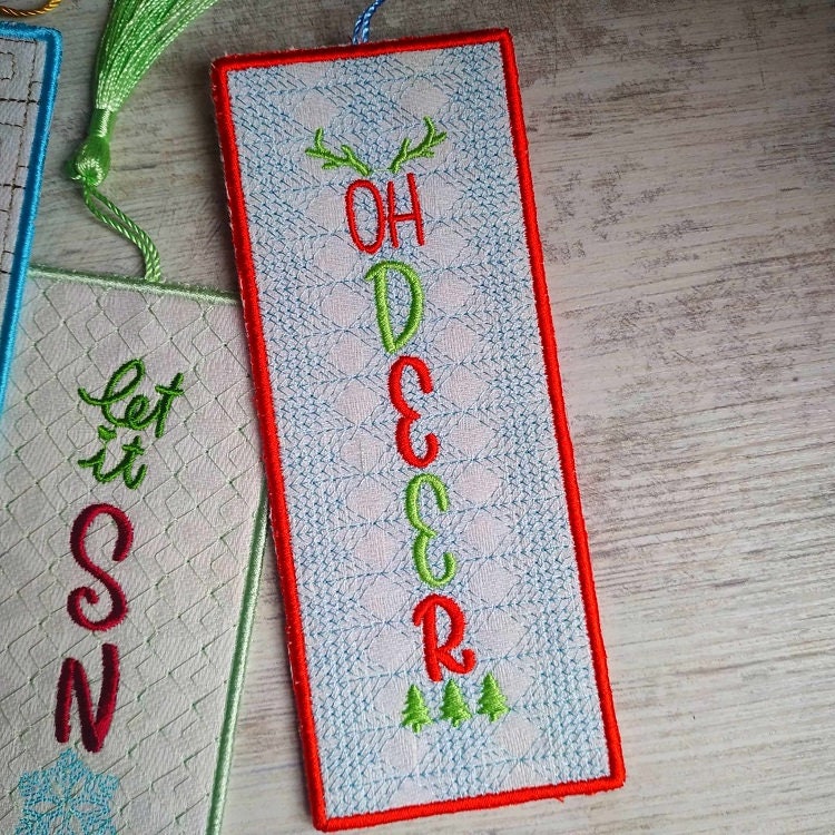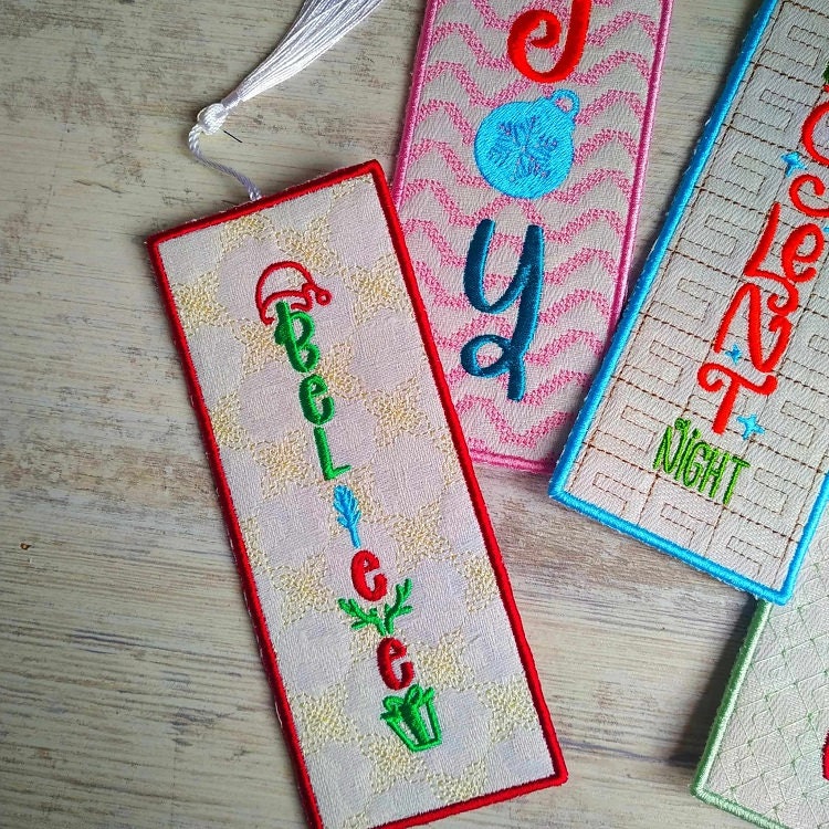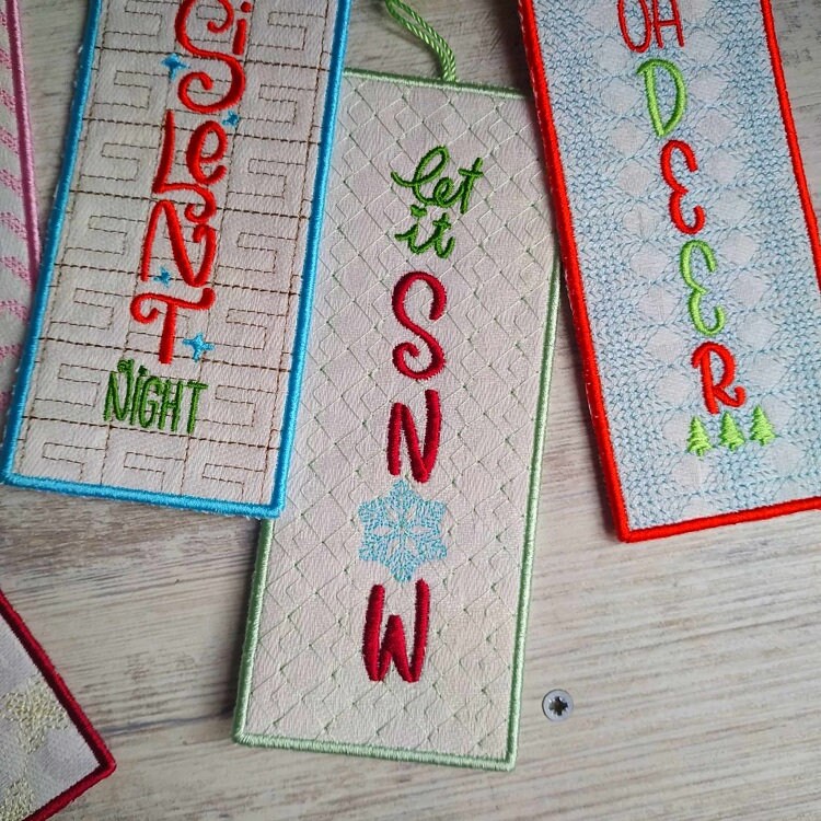 Five Christmas bookmarks done completely in the hoop.