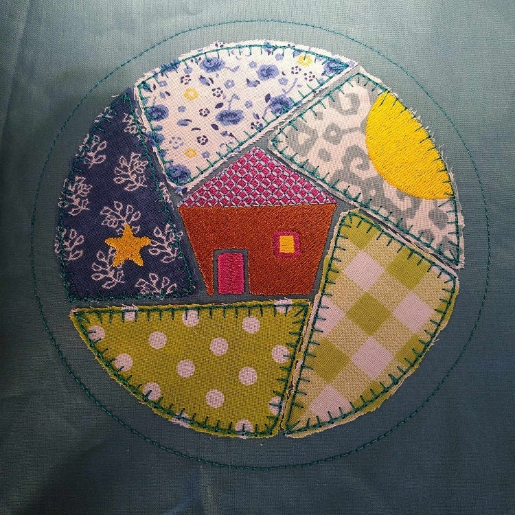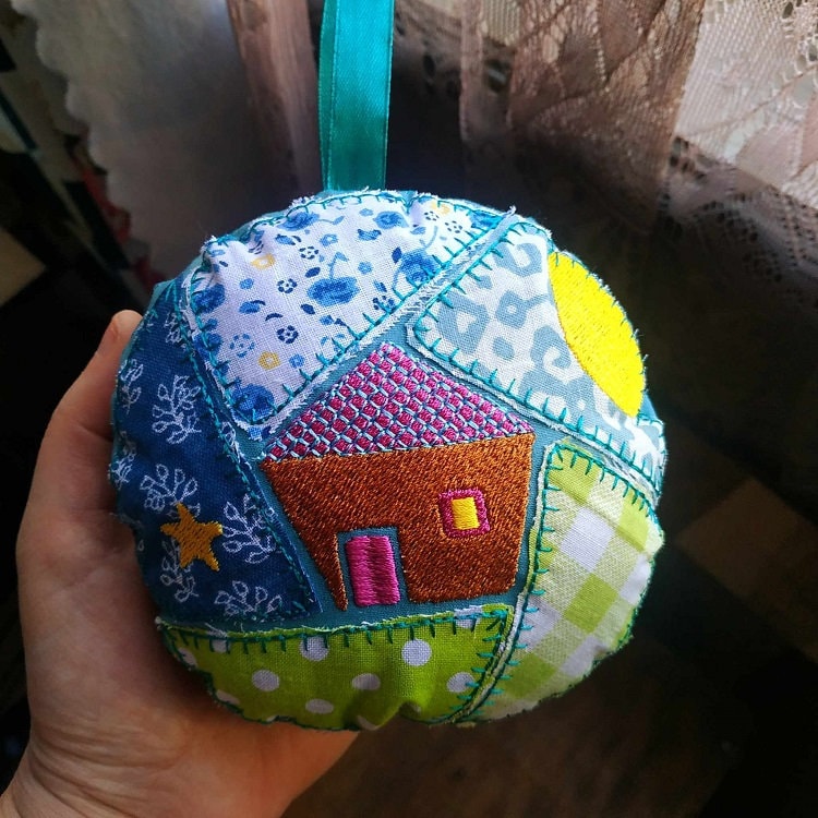 Cozy house ornament that is done completely in the hoop with a little handsewing inclusion.