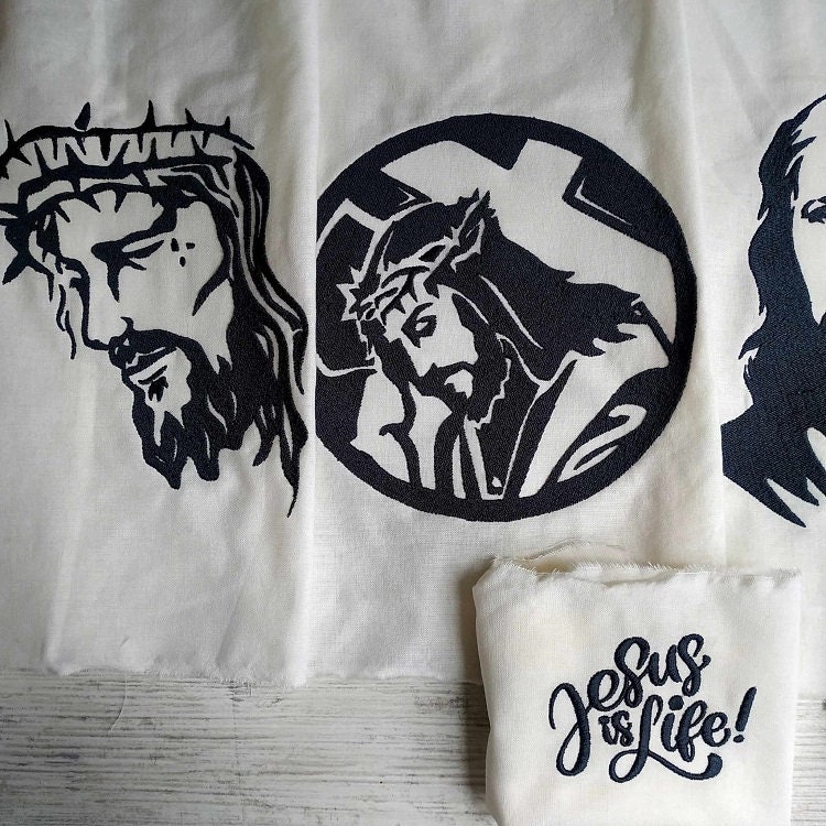 Jesus designs set. Includes six designs, four designs with Jesus and two with the writings.