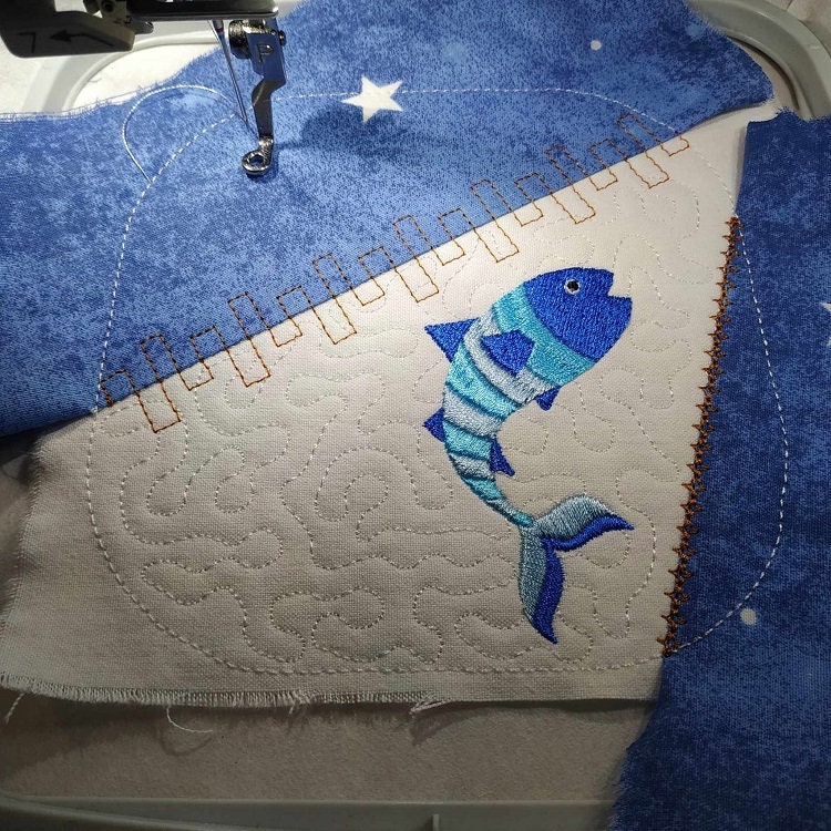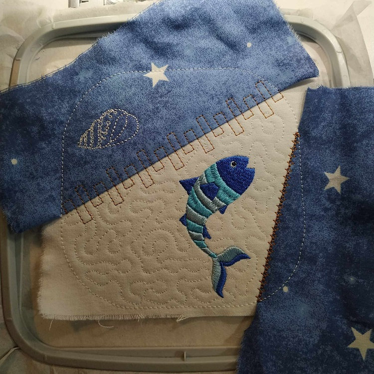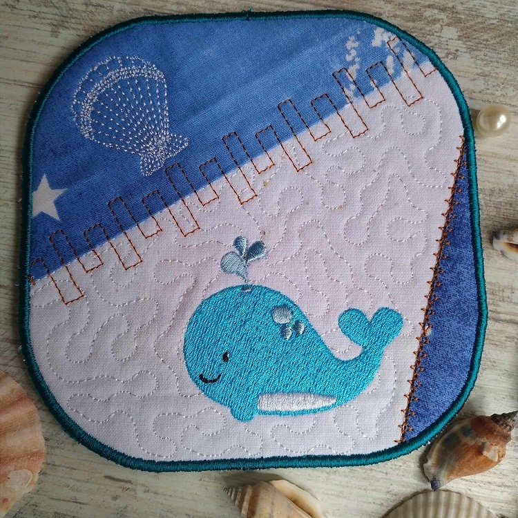 This beautiful set of navy coasters are for the sea lovers. For people who love shells, life of water, fun of dolphins and everything sea. They are done completely in the hoop in single hooping.