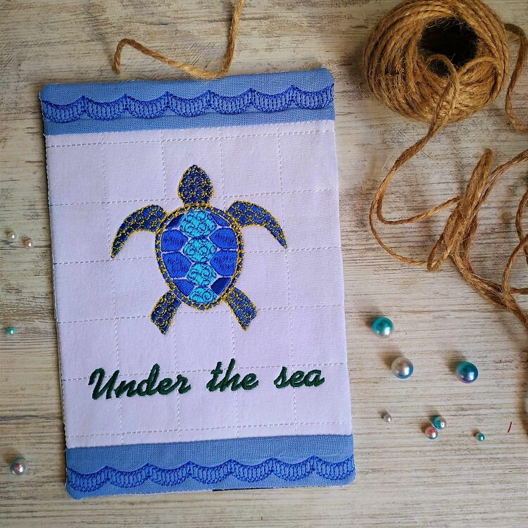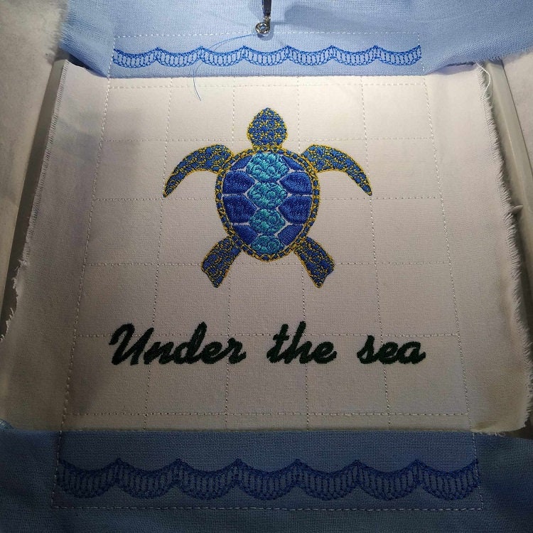 Navy topic mugrug for the lovers of everything water. This is done completely in the hoop with no additional sewing.