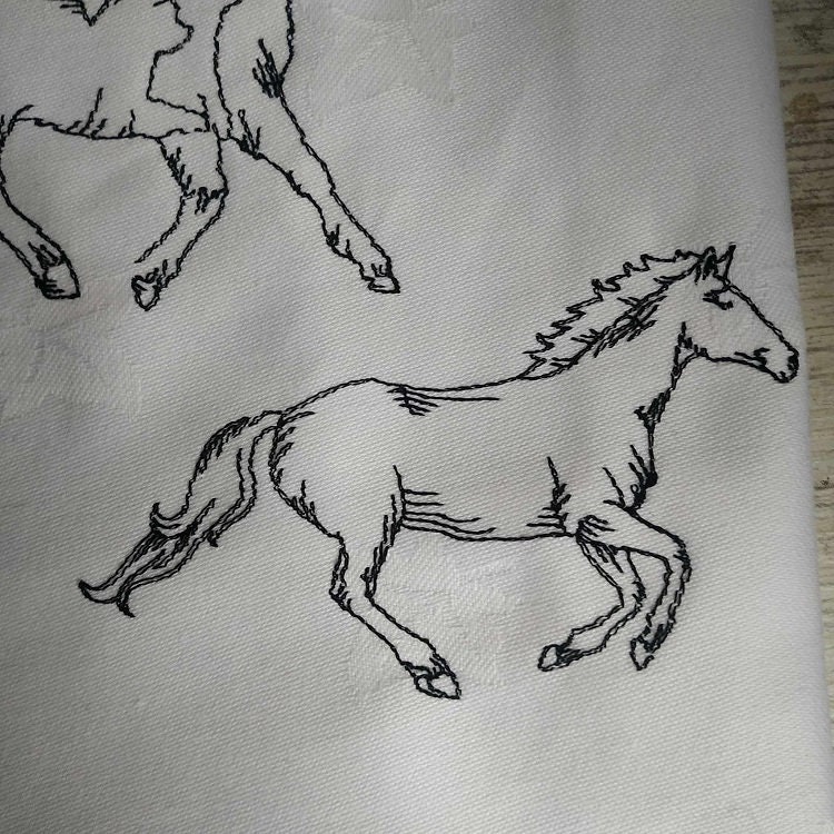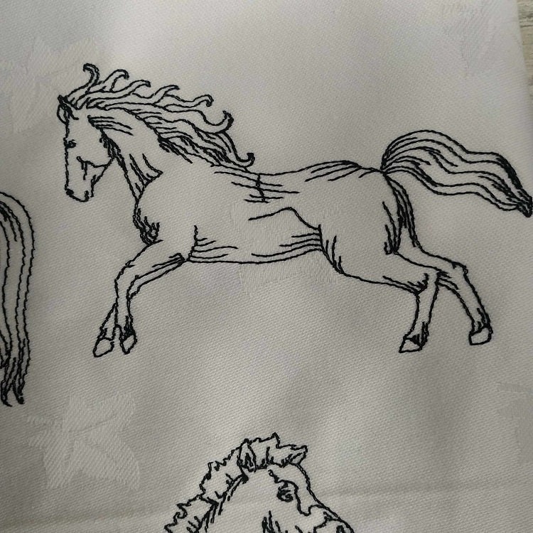 Horses easy stitch embroidery designs. The set includes 7 designs in single color.