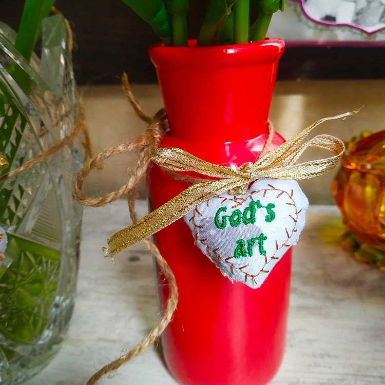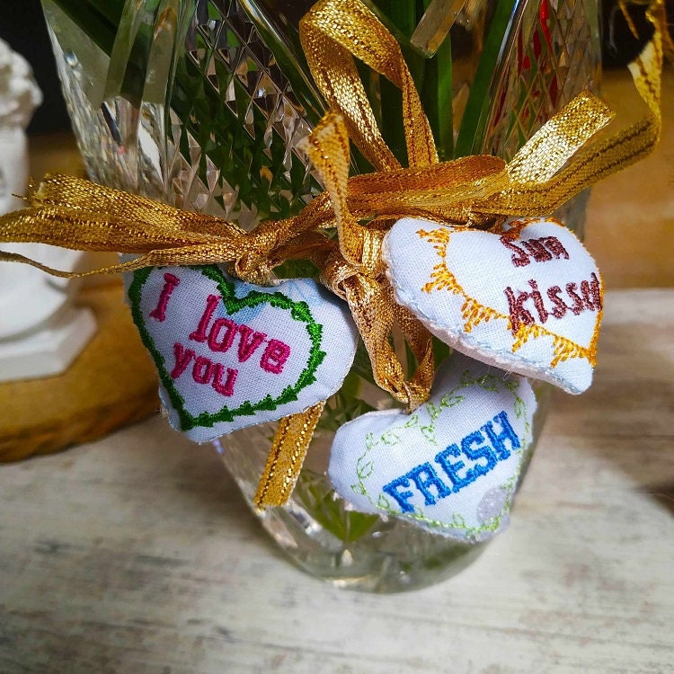 Tiny four ornaments for the vase done in one hooping altogether and includes a little handsewing.
