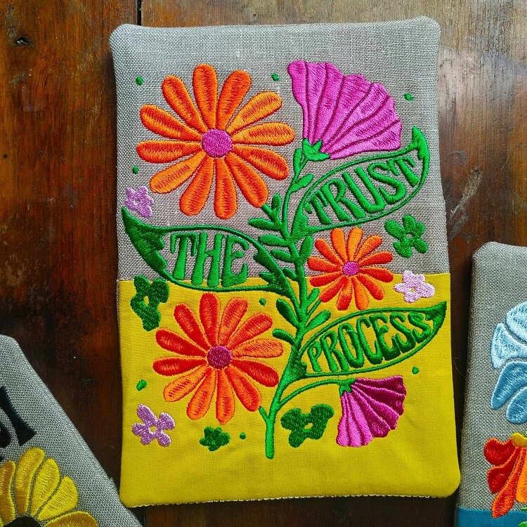 Special mugrugs with inspirational messages. The set includes three pieces of the pocket back mugrugs - done completely in the hoop.