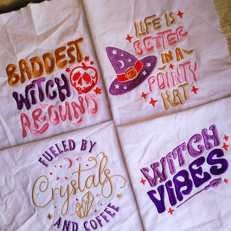 Beautiful four designs for all the witches and their favorites. Great for the tea towels or your other projects.