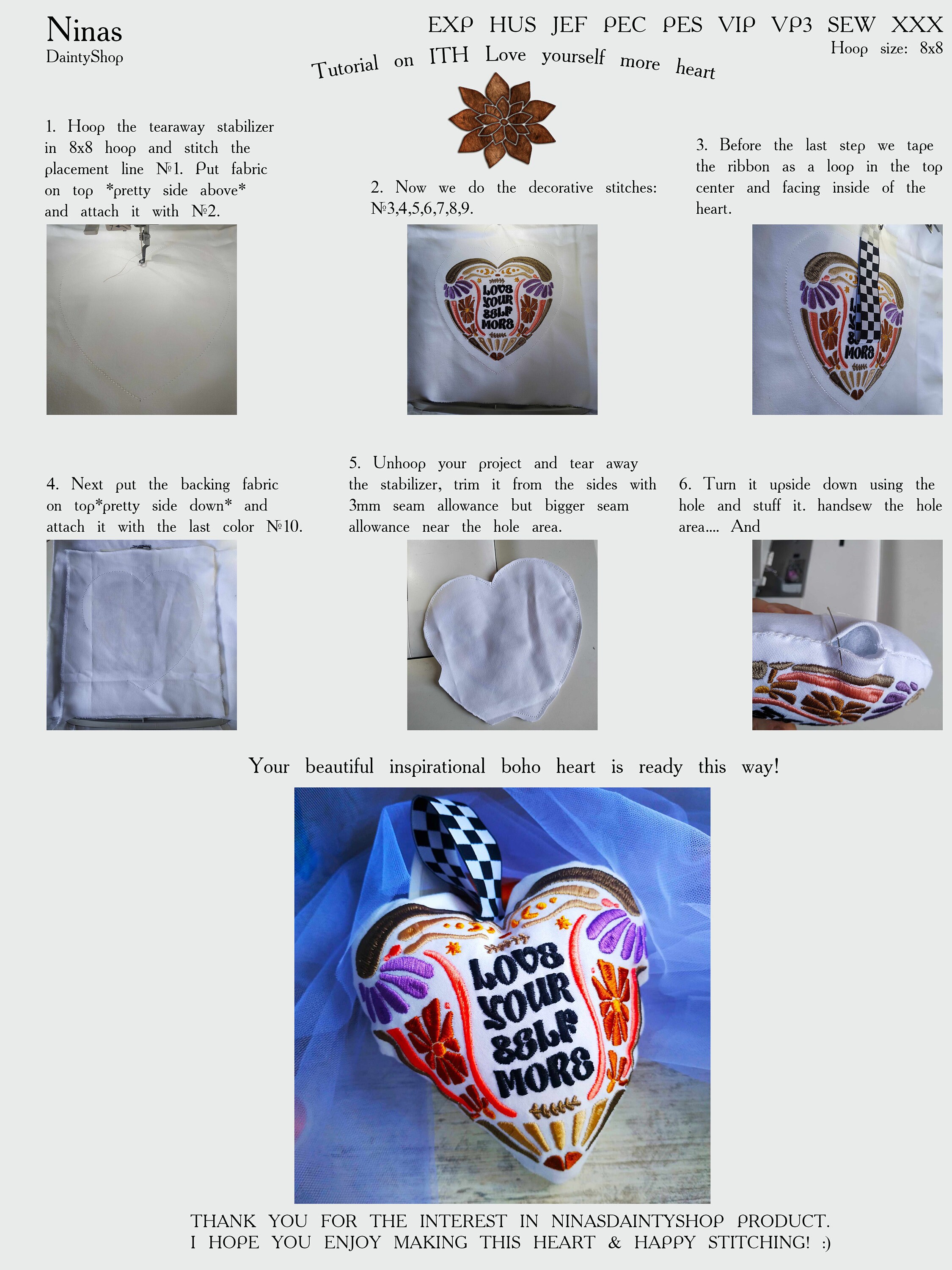 Boho inspirational heart that is done completely in the hoop with a little handsewing inclusion.