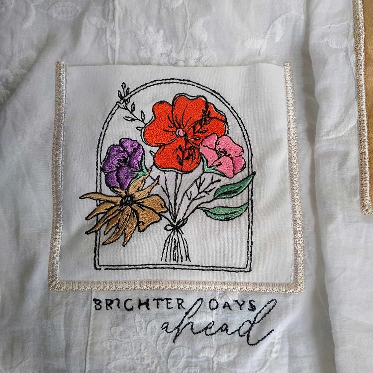 Special two pockets easily done completely in two hoopings without additional sewing.