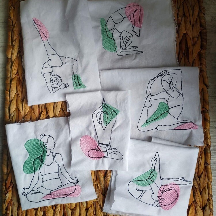 Yoga six designs set. These designs will look special on tote bags, tea towels or your any project and would make the great gifts for Yoga lovers.