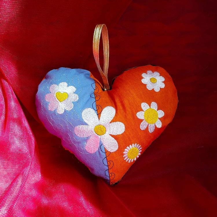 Daisy heart - done completely in the hoop with a little handsewing inclusion.