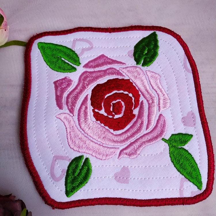 Beautiful rose coaster that is done completely in the hoop without additional sewing.
