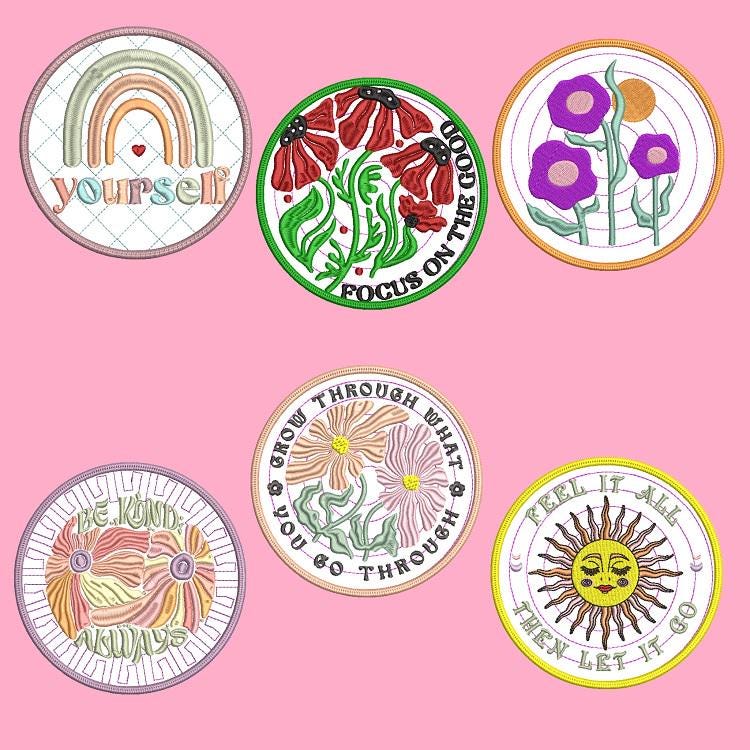 The set of six coasters done completely in the hoop without additional sewing. They are fun to make and designed on all the special topics.
