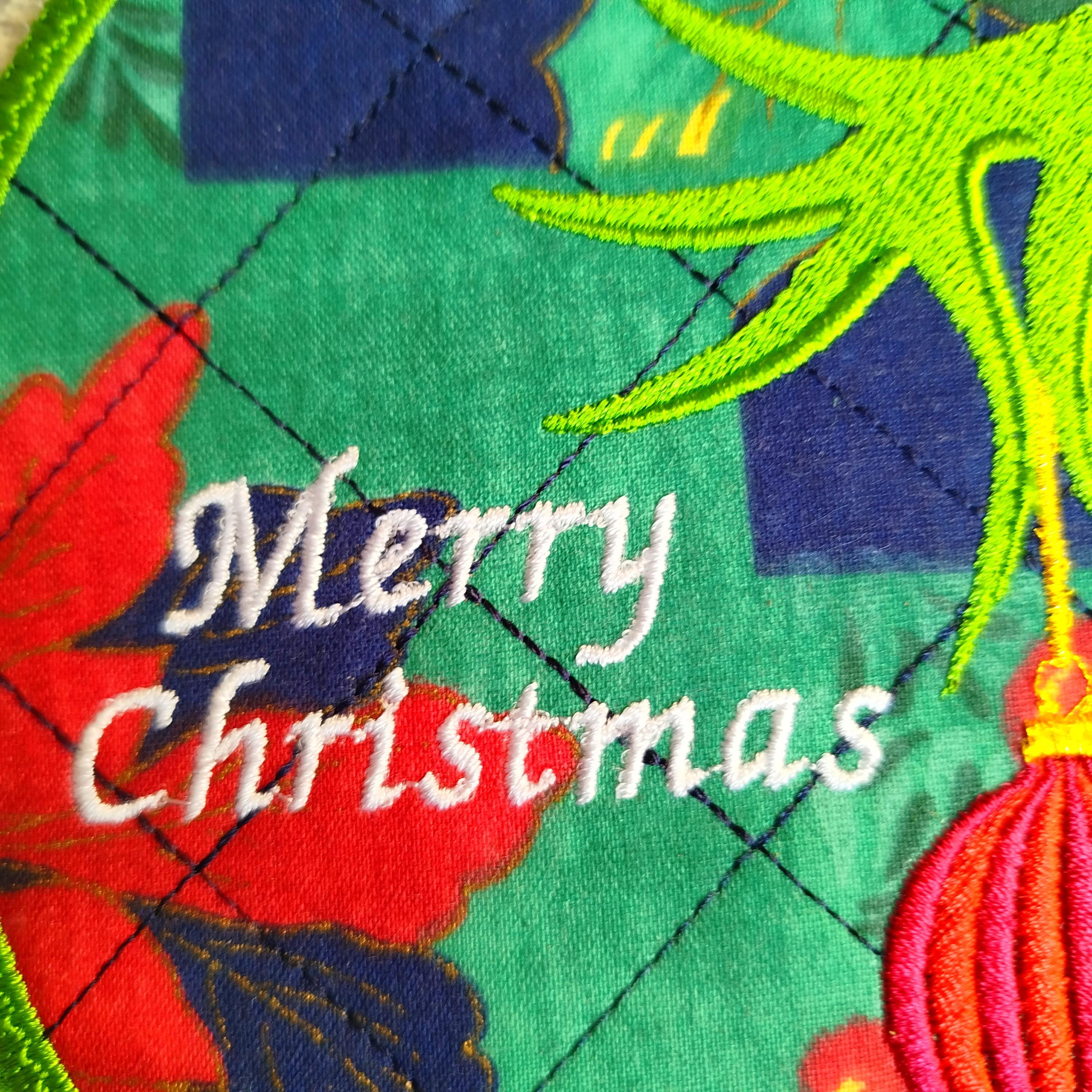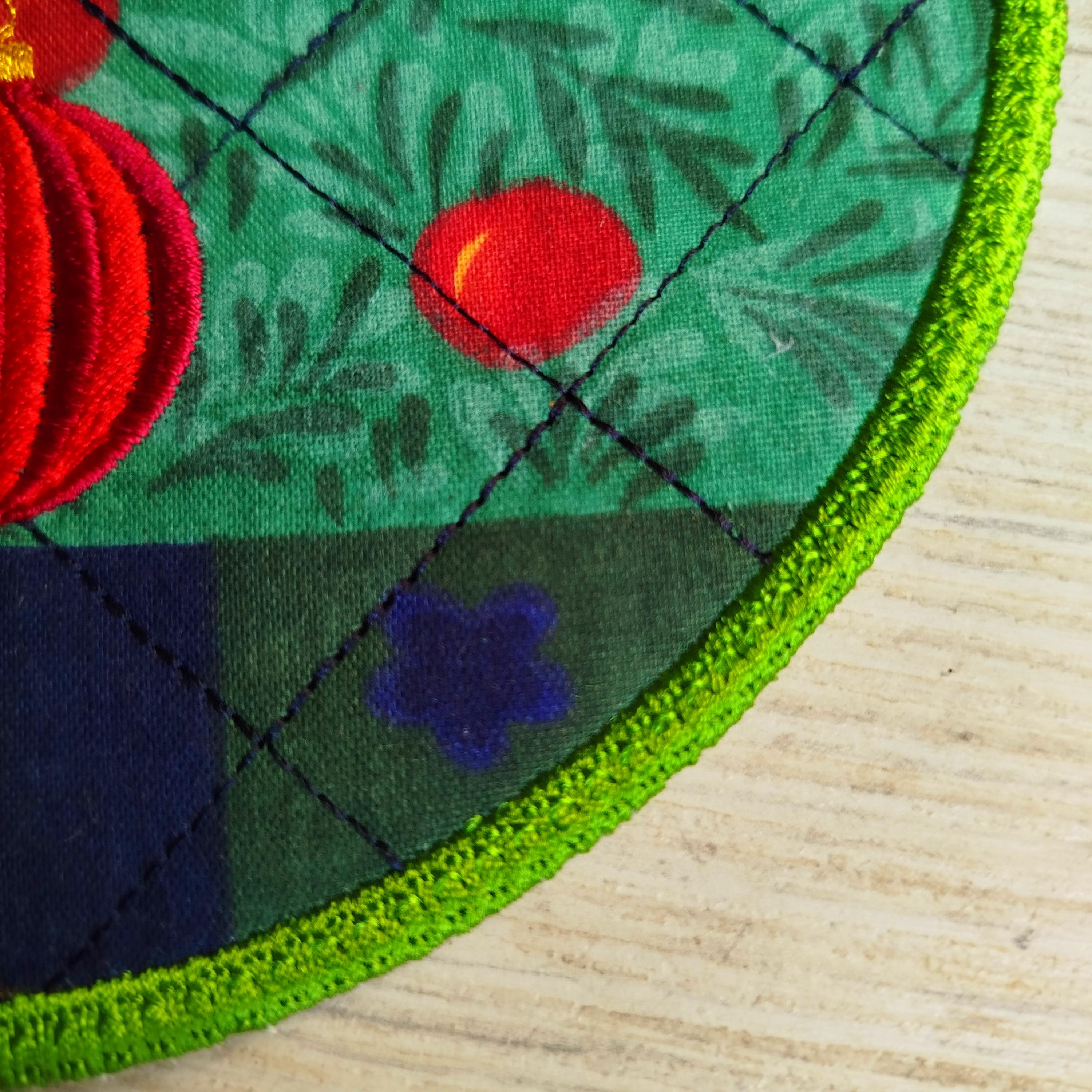 Christmas coaster that is made completely in the hoop without additional sewing.