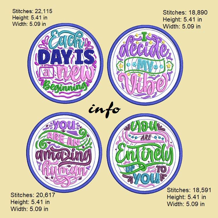 Inspirational four coasters designs - done completely in the hoop without additional sewing.