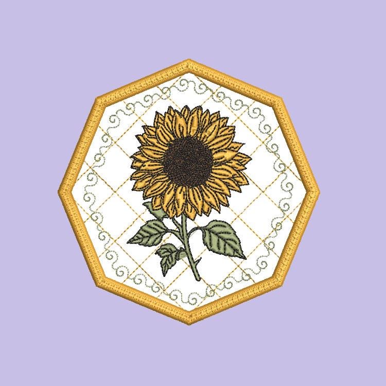 Sunflower coaster that is done completely in the hoop.