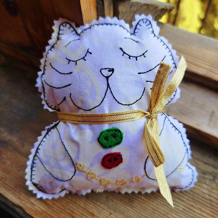 Little kitty ornament that is done completely in the hoop with a little handsewing inclusion.