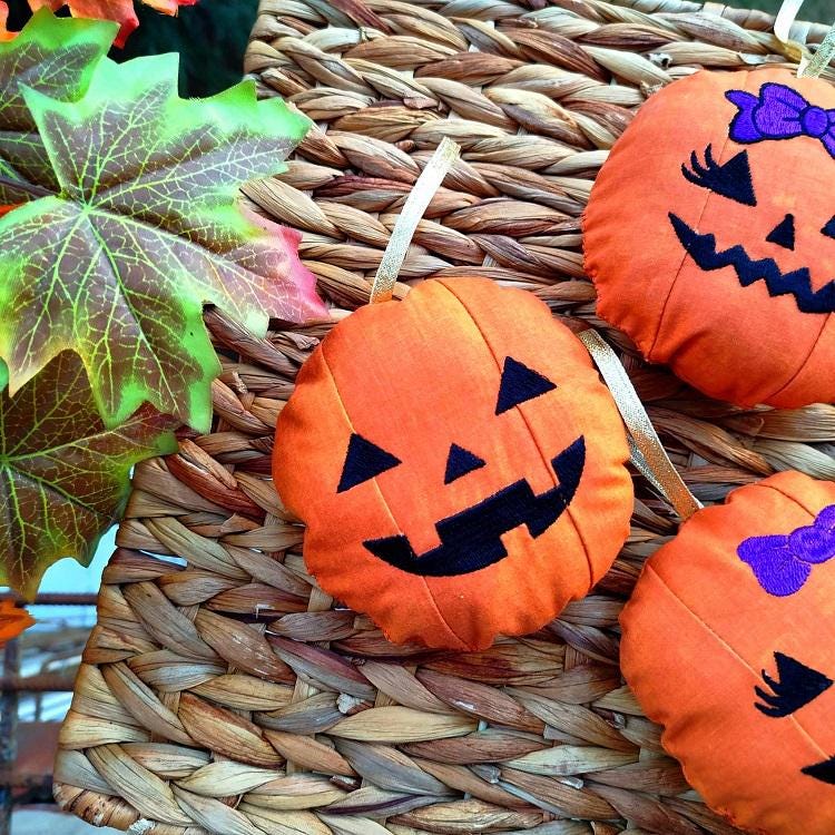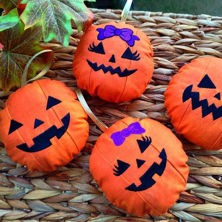 Little pumpkins - made completely in the hoop with a little handsewing inclusion. These ornaments are easy to make and are great for gifting!