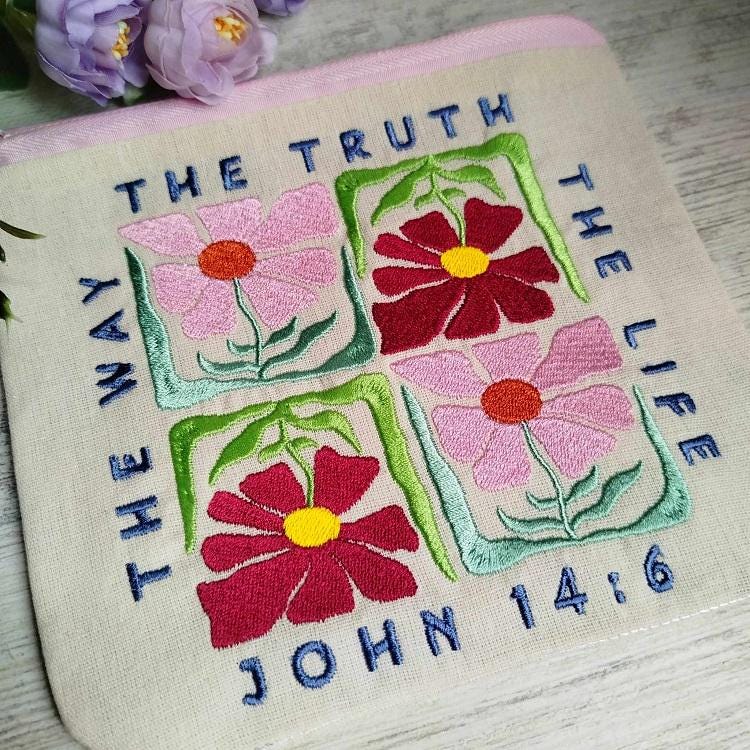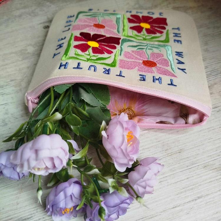 Inspirational fully lined purse - made completely in the hoop with a little handsewing inclusion.