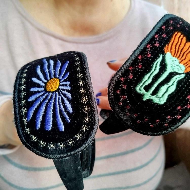 Beautiful headband add-ons - 2 designs made completely in the hoop and then hot glued to the headband. This designs do not include headband pattern. You need to have headband and then stitch this designs and attach them. Each design is made in single hooping without additional sewing.