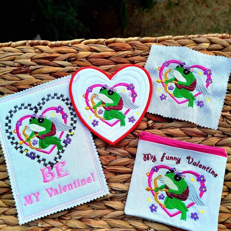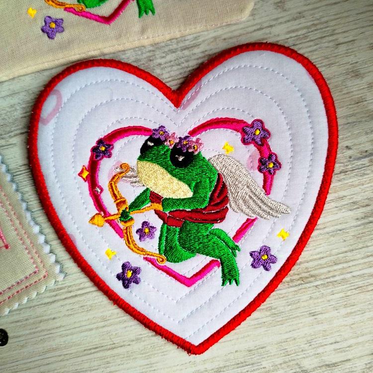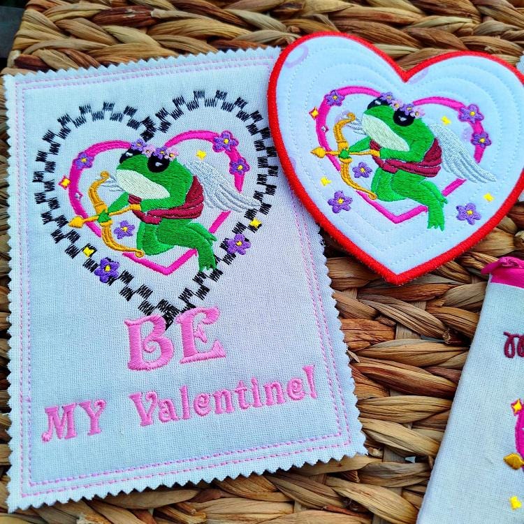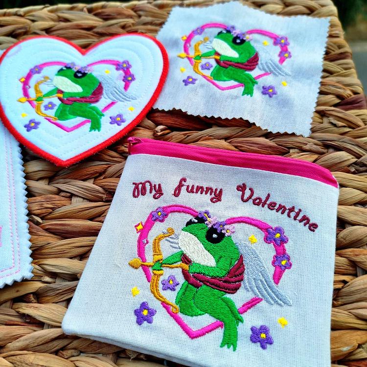 Cute Valentines set - 4 designs: simple embroidery file (4x4 hoops), ITH Purse (5,5x5,5), ITH Coaster (5,5x5,5) and ITH Card (5x7).