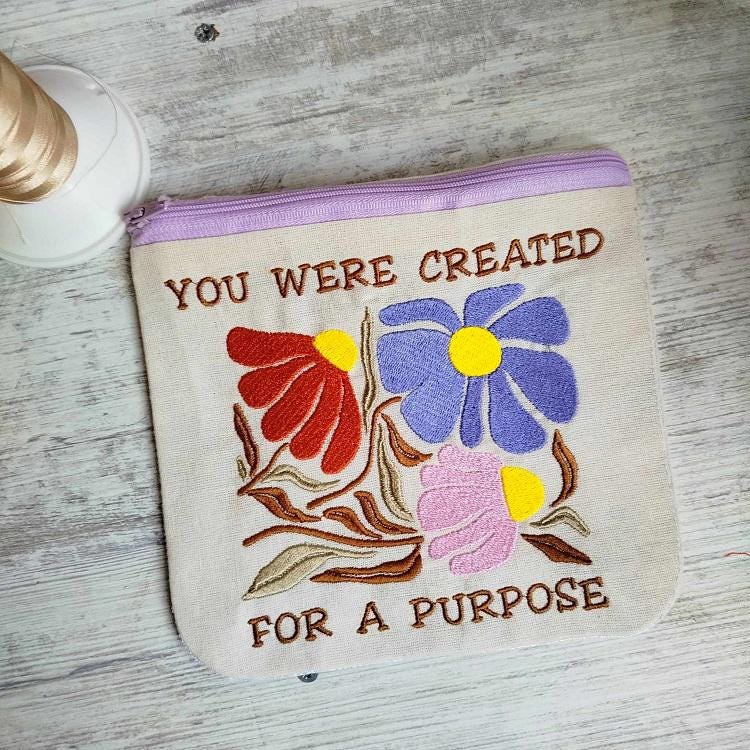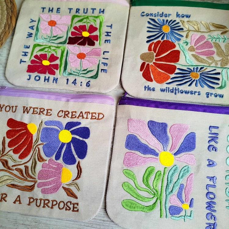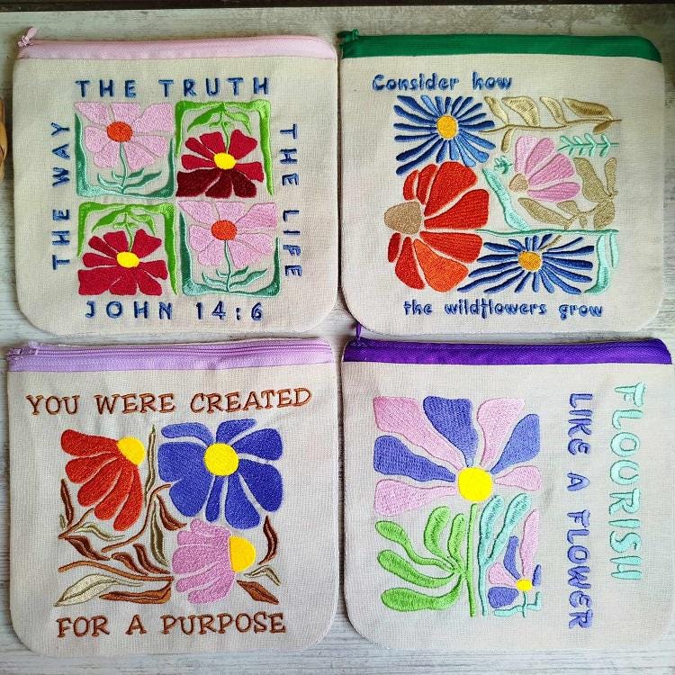 Beautiful Inspirational Fully lined 4 purses set - made in the hoop with a little handsewing inclusion.
