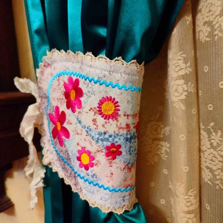 Beautiful curtain fixer made completely in the hoop without additional handsewing. Makes the beautiful decorative element for your house.