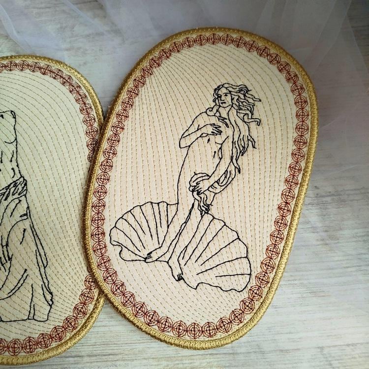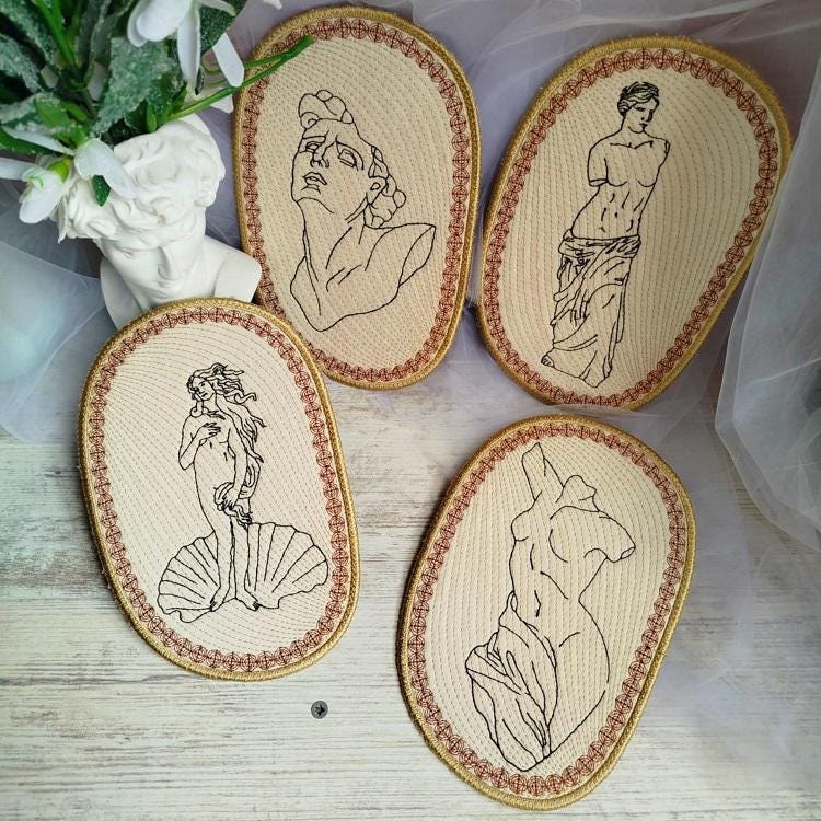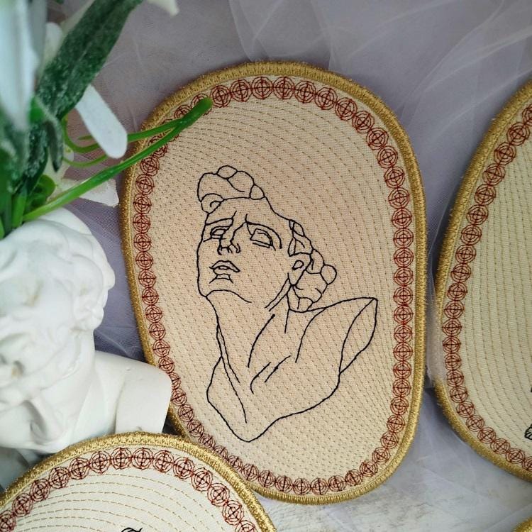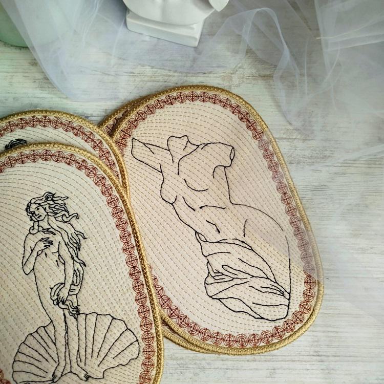 Beautiful coasters about art - 4 designs - made completely in the hoop.