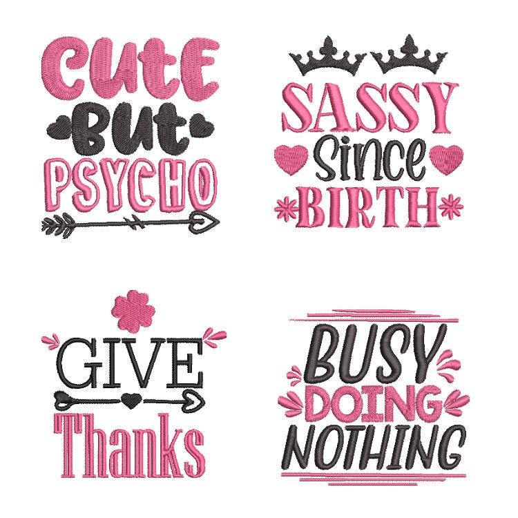 Funny and girly embroidery designs - 4 patterns for your tea towels, blouses, jackets etc.