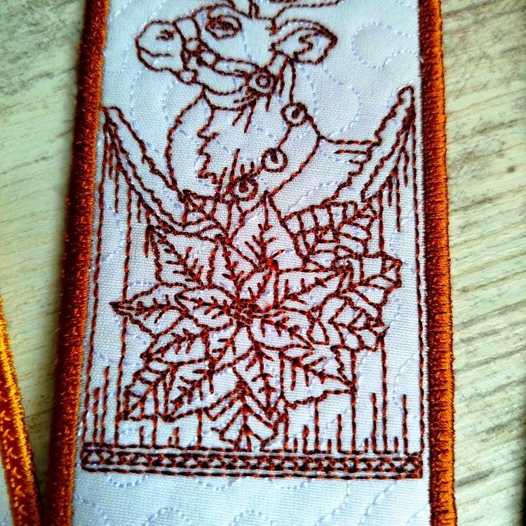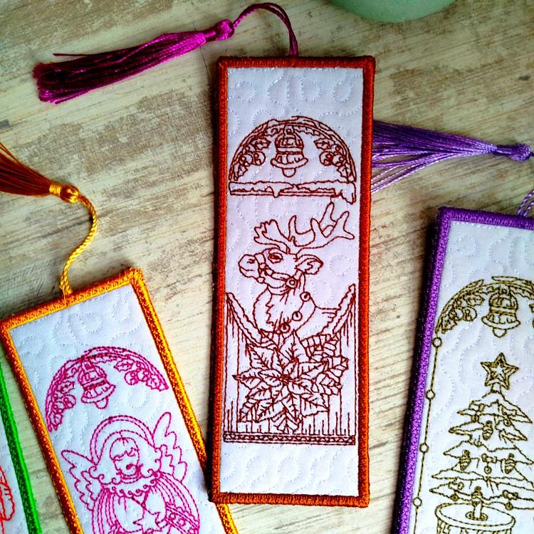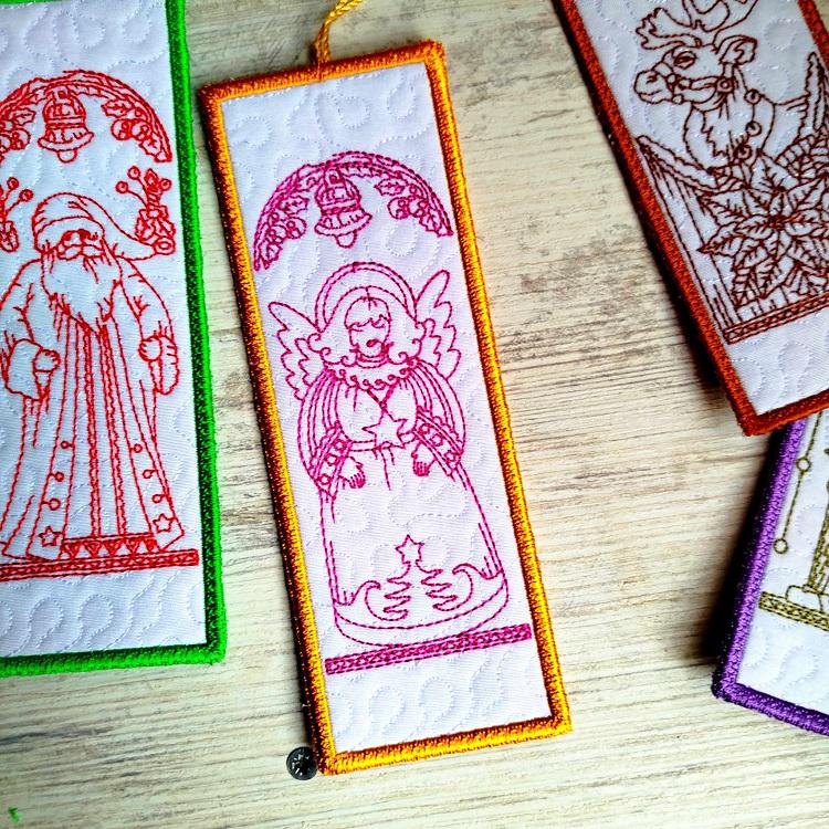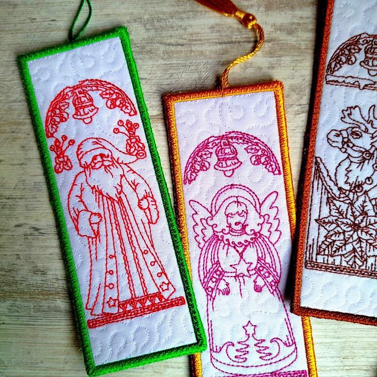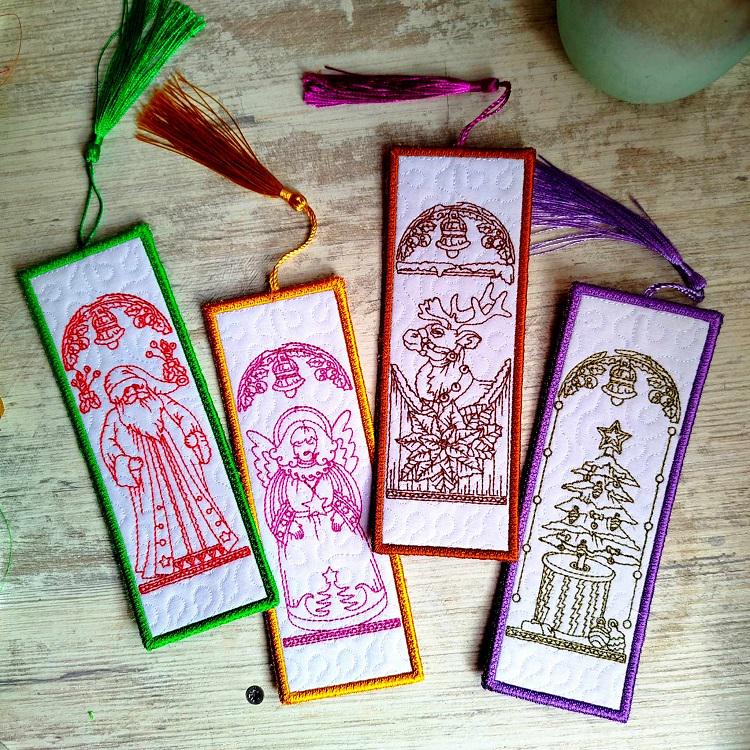Beautiful Vintage Christmas bookmarks second set of four - made completely in the hoop.