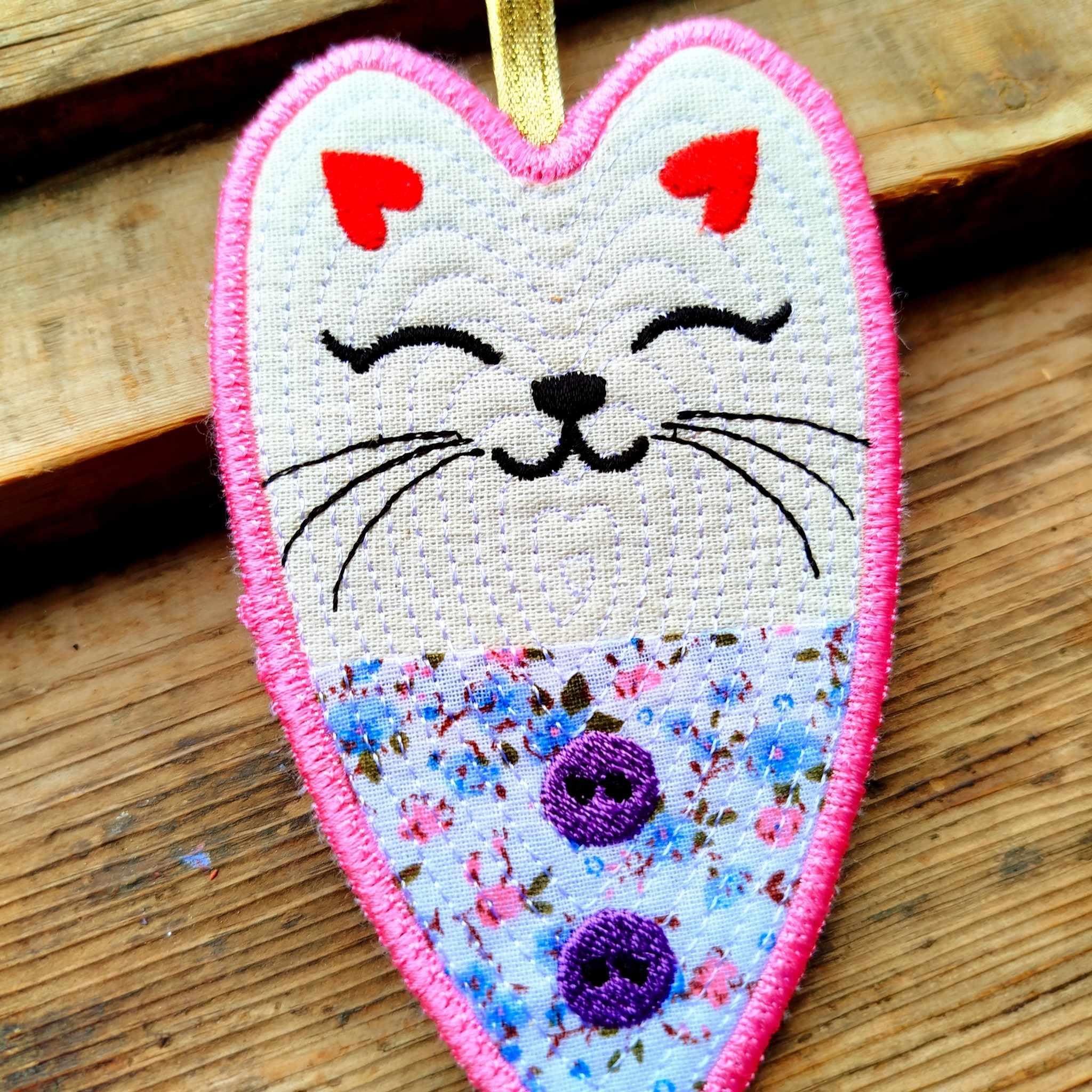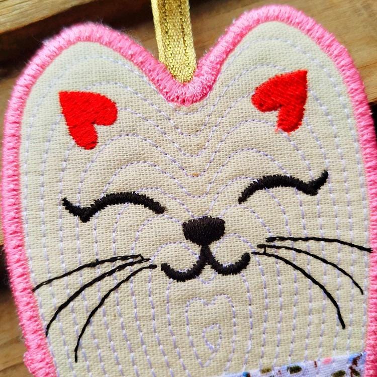 Kitty ornament - made completely in the hoop. Makes the great gift for the kitty lovers.