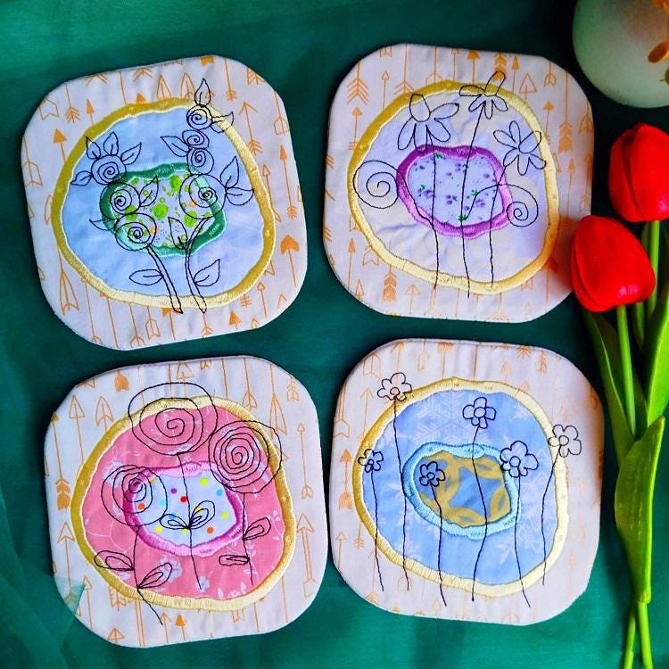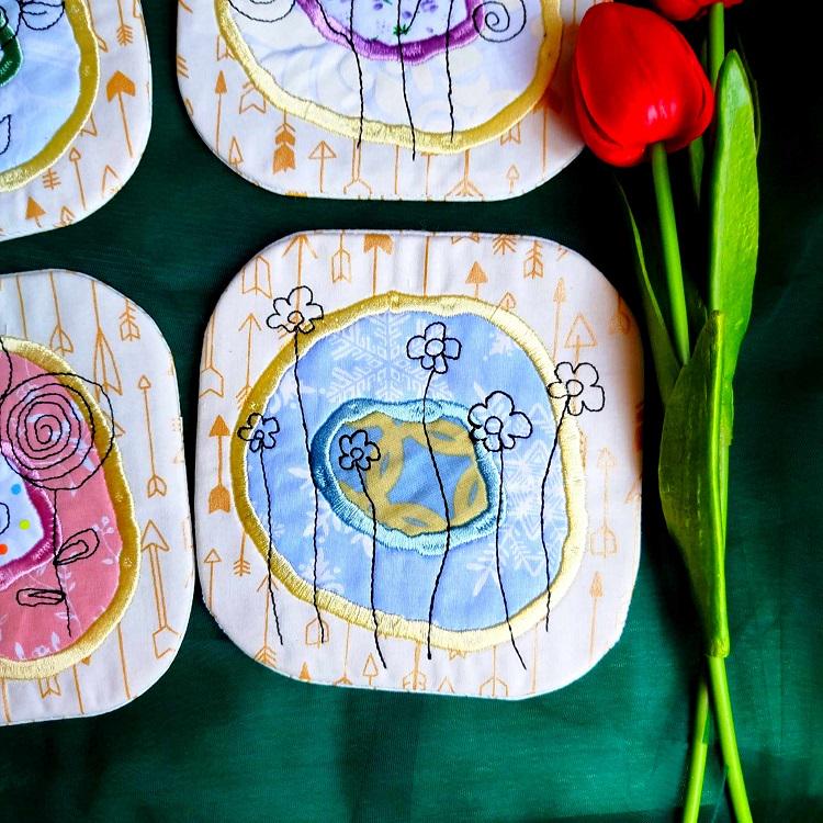 Pocket back beautiful little mugrugs - made completely in the hoop.