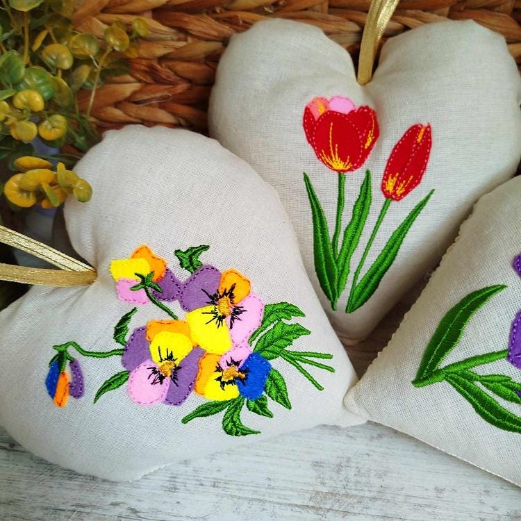 This set includes three hearts (Iris, tulips and pansy) designs.