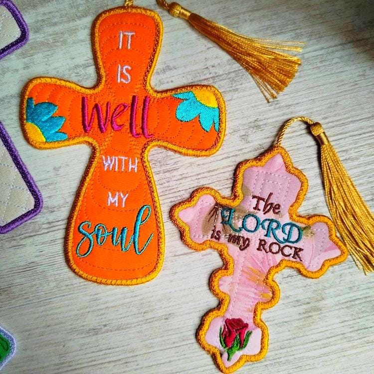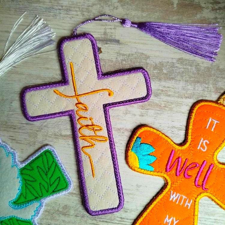 Selection of four inspirational cross bookmarks - made completely in the hoop.