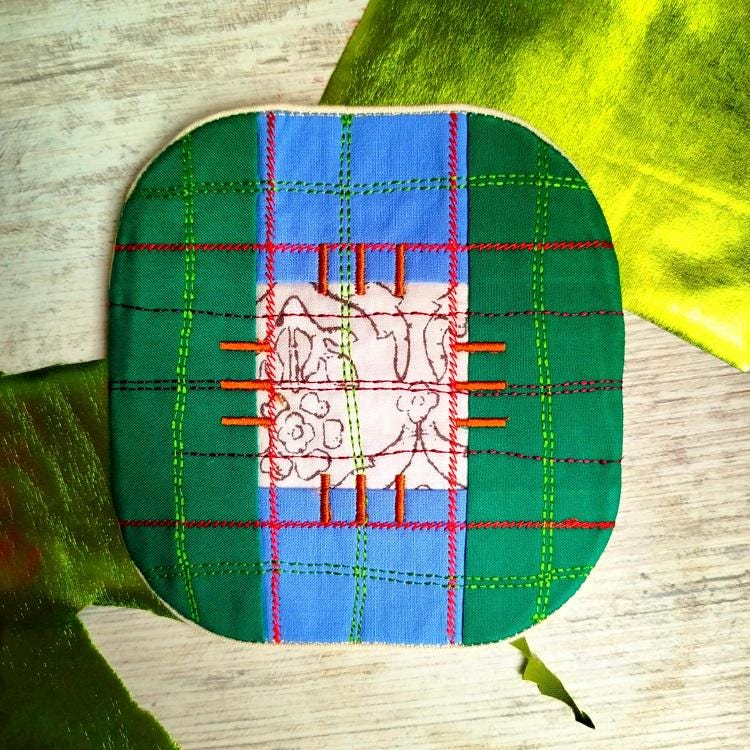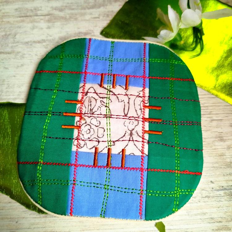 Scottish checks inspired pocket back coaster design - made completely in the hoop.