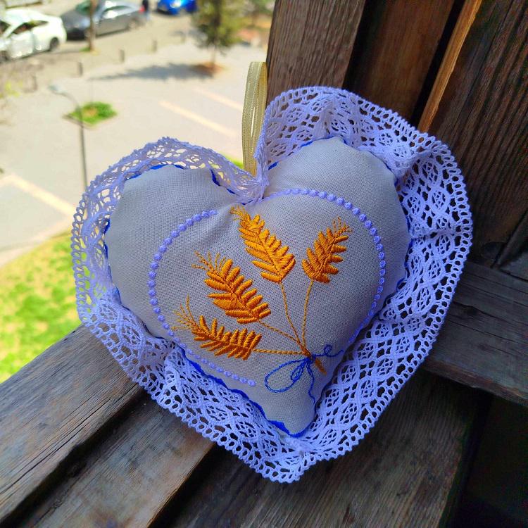 Beautiful and fresh heart ornament - made in the hoop with a little handsewing inclusion.