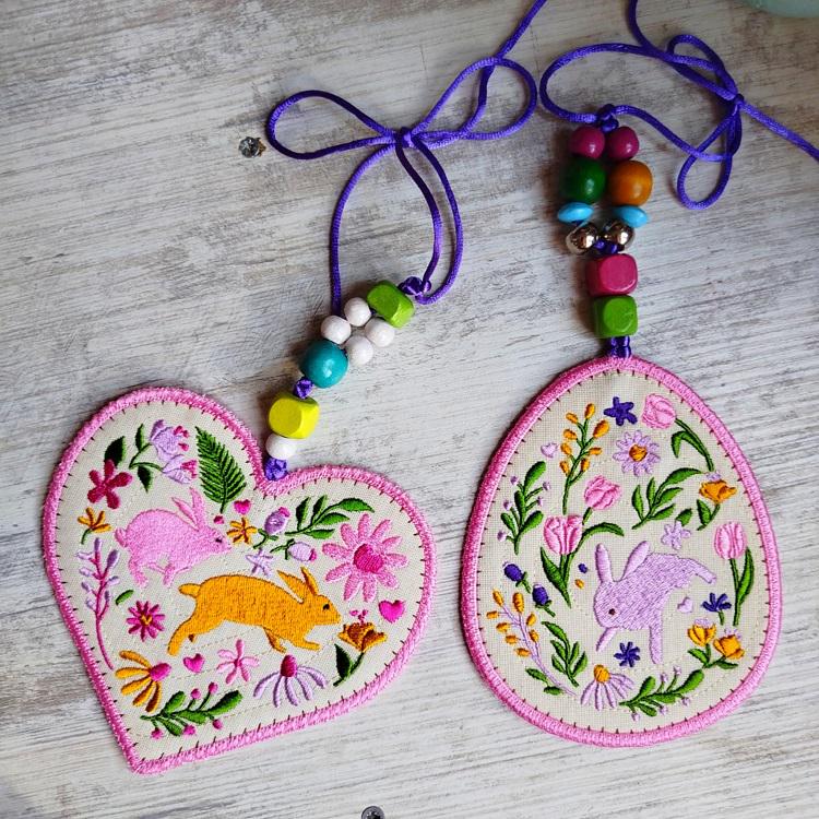 Sweet bunnies ornaments or coasters - done completely in the hoop.