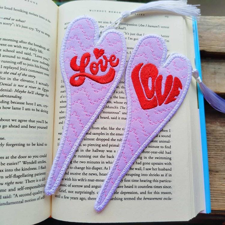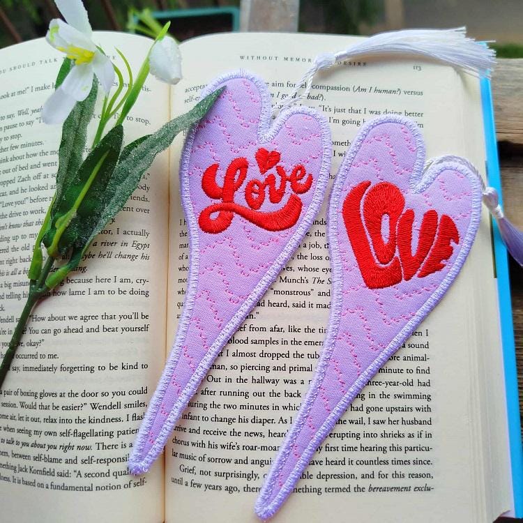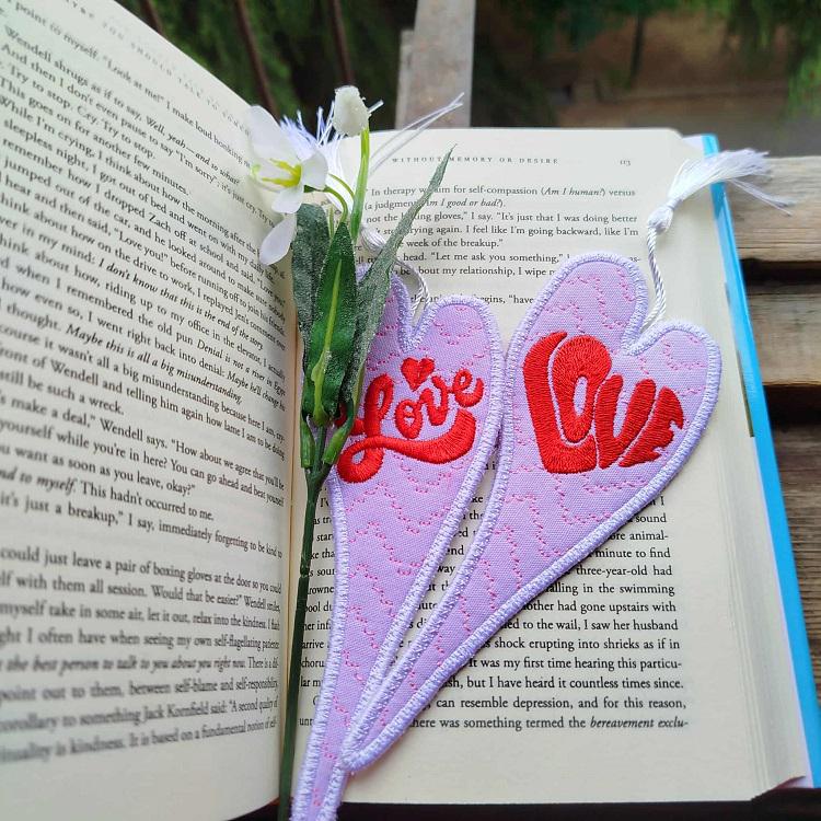 The bookmarks set to love! This set includes two designs done completely in the hoop.