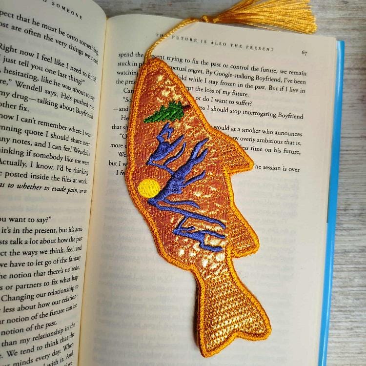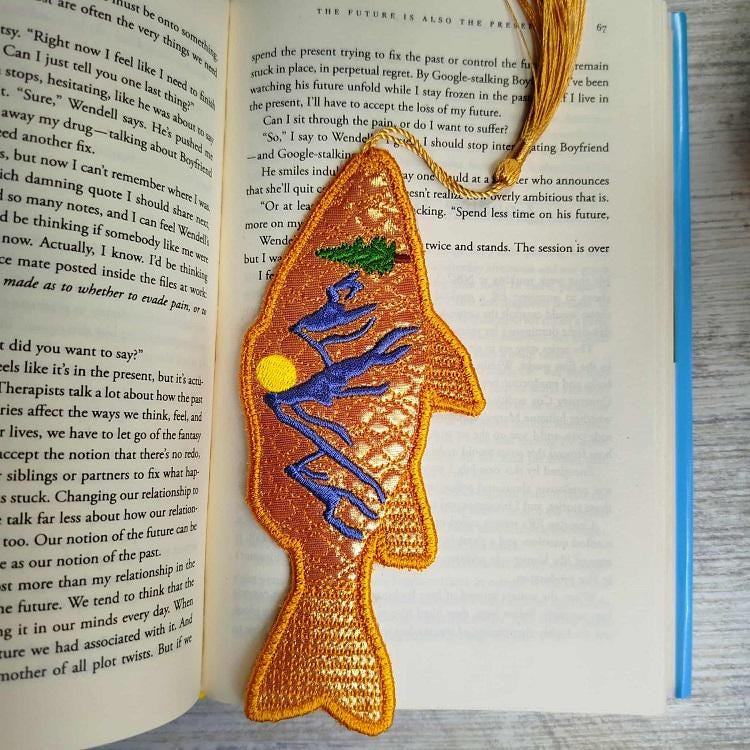 Unique Goldie fish bookmark - made completely in the hoop.