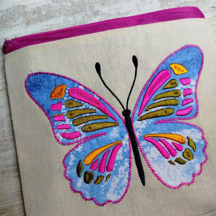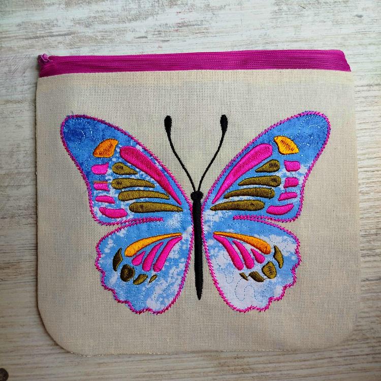 ITH Butterfly applique fully lined purse for 8x8 - made in the hoop with a little handsewing inclusion (size: Height: 7.20 in Width: 7.50 in).