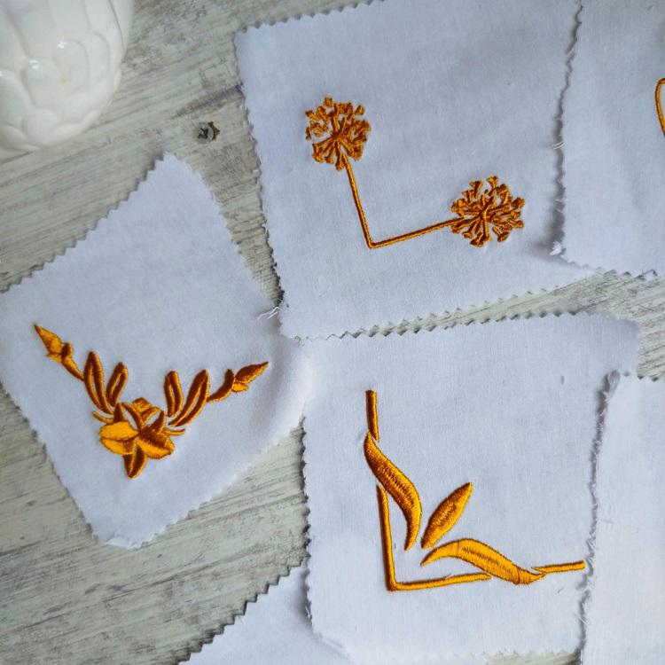 Beautiful napkins or hankies corners. This set includes six designs.