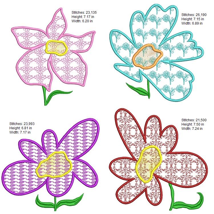 Beautiful and huge floral appliques. Each applique to fit 8x8 hoop.