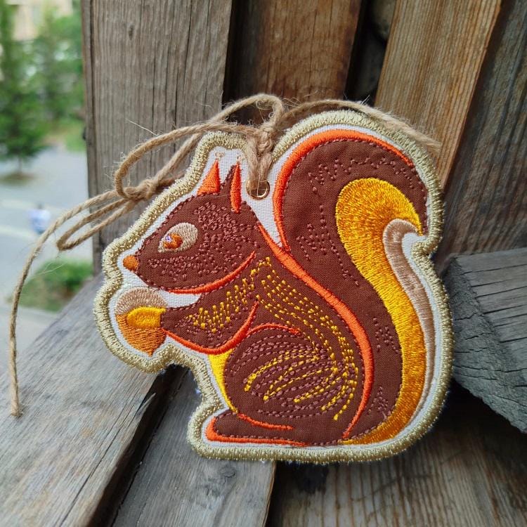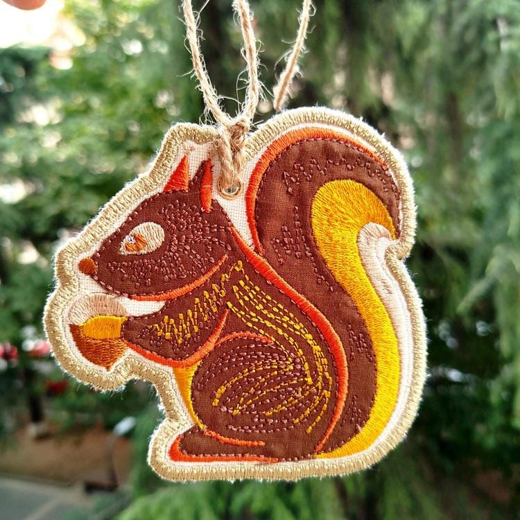 Very sweet squirrel ornament - made completely in the hoop.