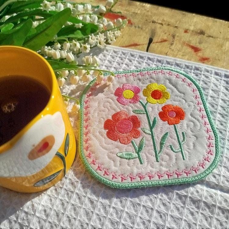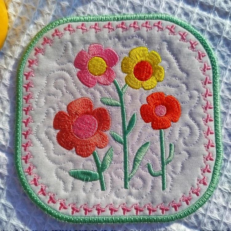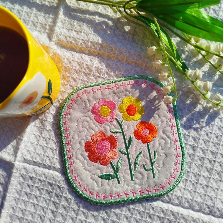 Floral coaster that is made completely in the hoop!