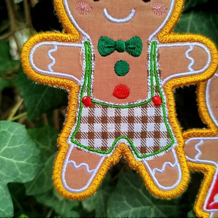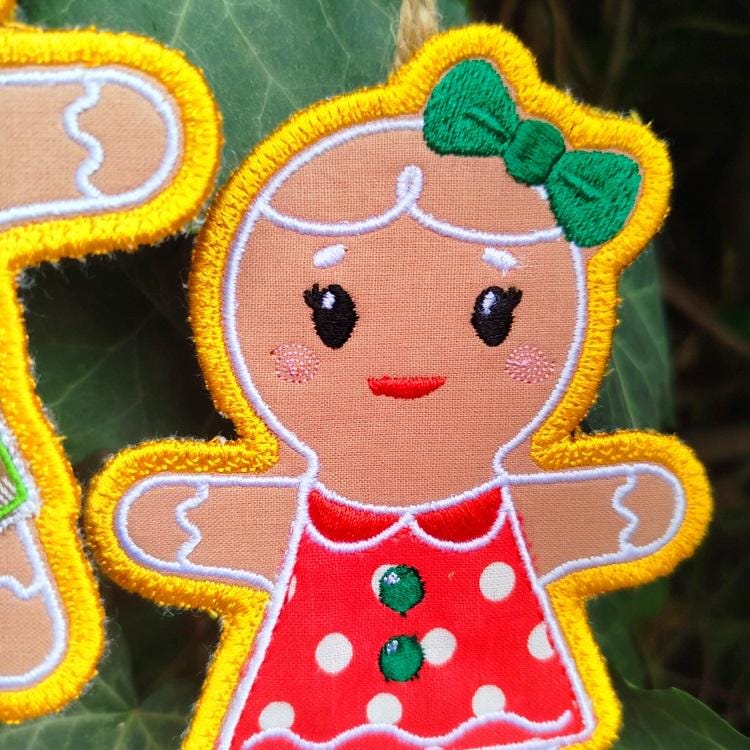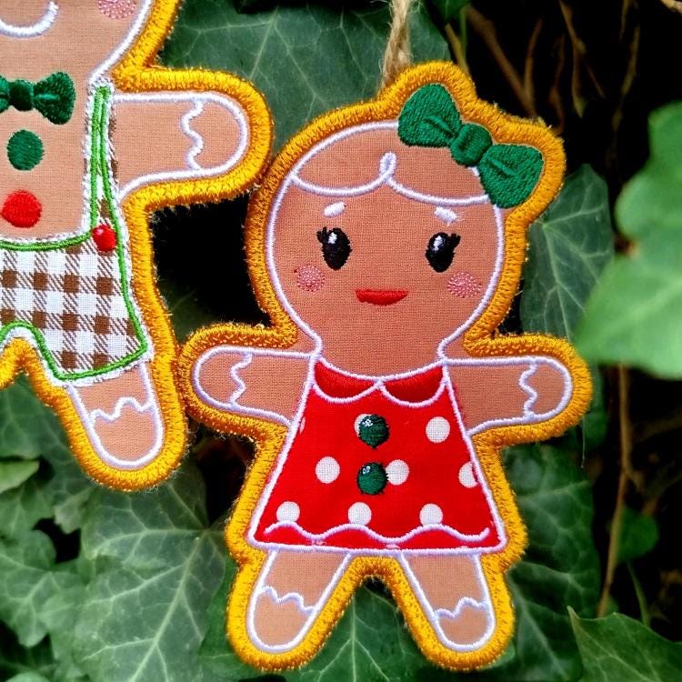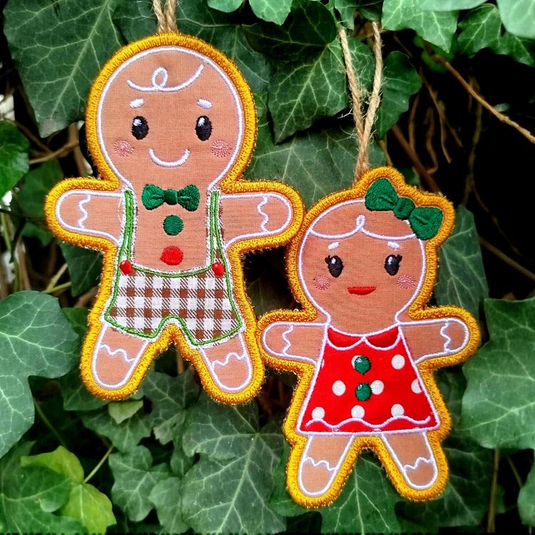 Sweet gingerbread boy and girl ornaments - made completely in the hoop.