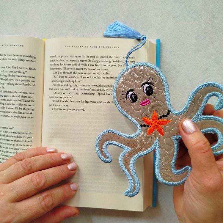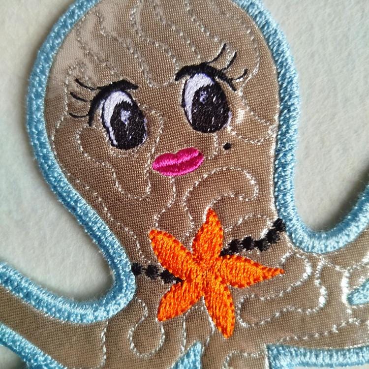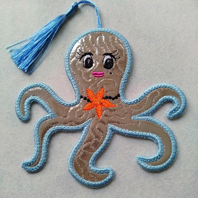 Sweet Rosie the octopus bookmark - made completely in the hoop.