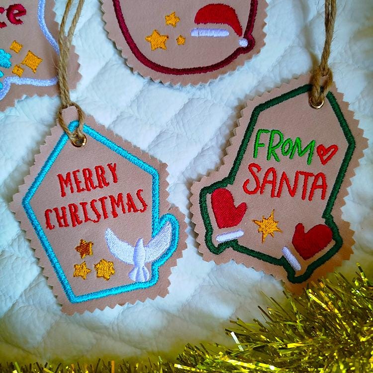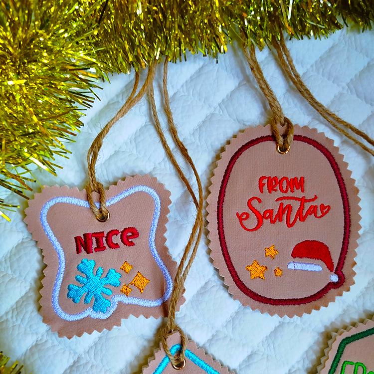 Festive Christmas tags - done completely in the hoop.
