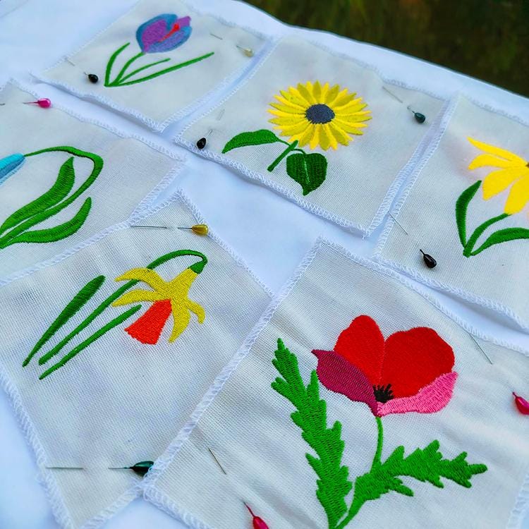 These flowers will look great on any of your projects: shirts, tote bags, even you can stitch these on coasters, mugrugs etc.
