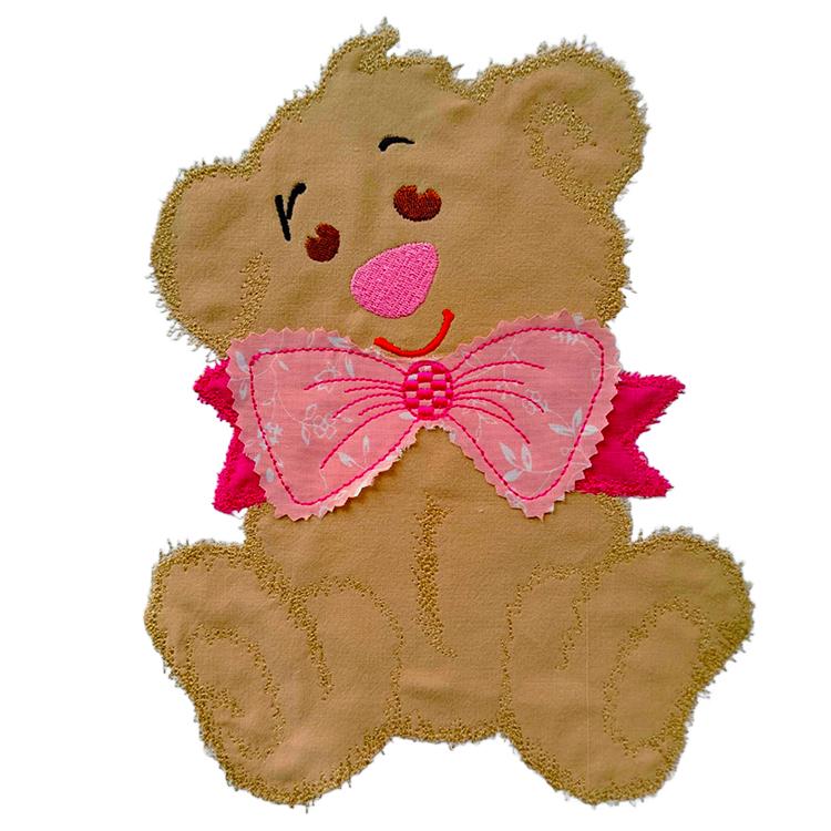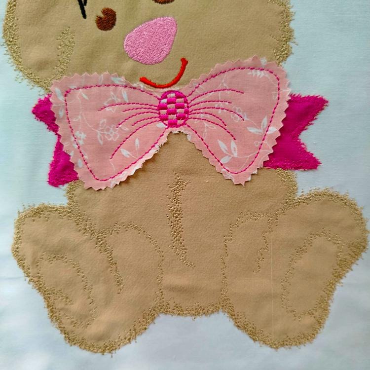 Sweet teddy applique that will look great on pillow cases, tote bags, back of the shirt and many more options where you can stitch it on.